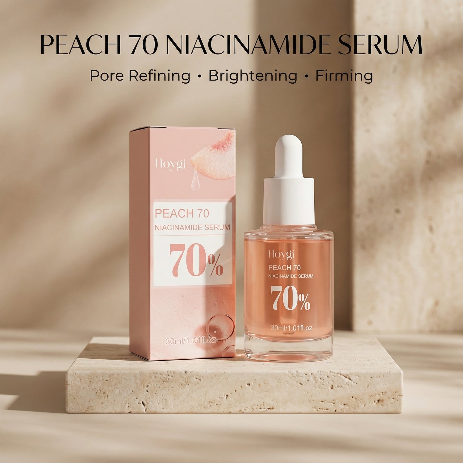 The star ingredients are Niacinamide and Peach Extract, renowned for their power to minimize pores, even skin tone, reduce fine lines, and boost overall radiance. They work synergistically for maximum impact.